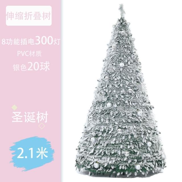 跨境工廠現貨可伸縮植絨落雪寶塔聖誕樹帶燈圓形折疊耶誕節飾品樹