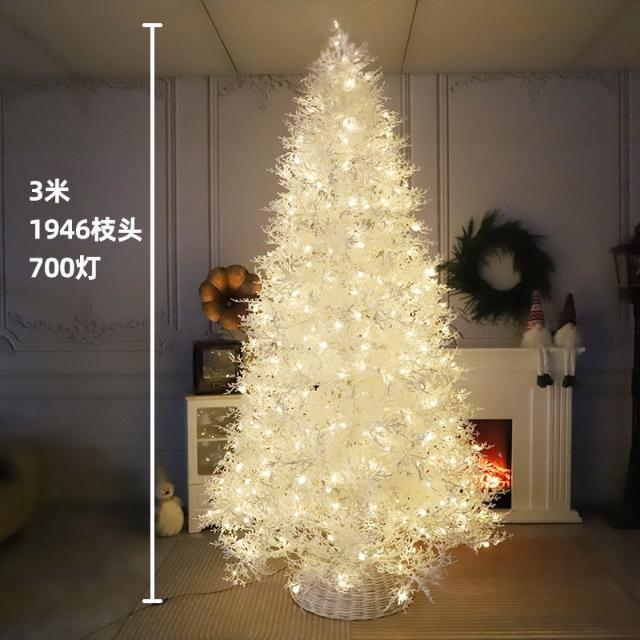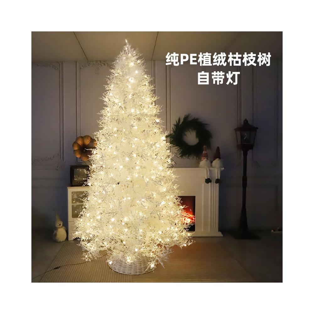 新款純PE聖誕樹枯枝樹植絨聖誕樹自帶燈雪域精靈聖誕樹全PE落雪樹