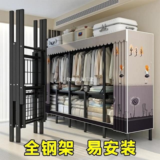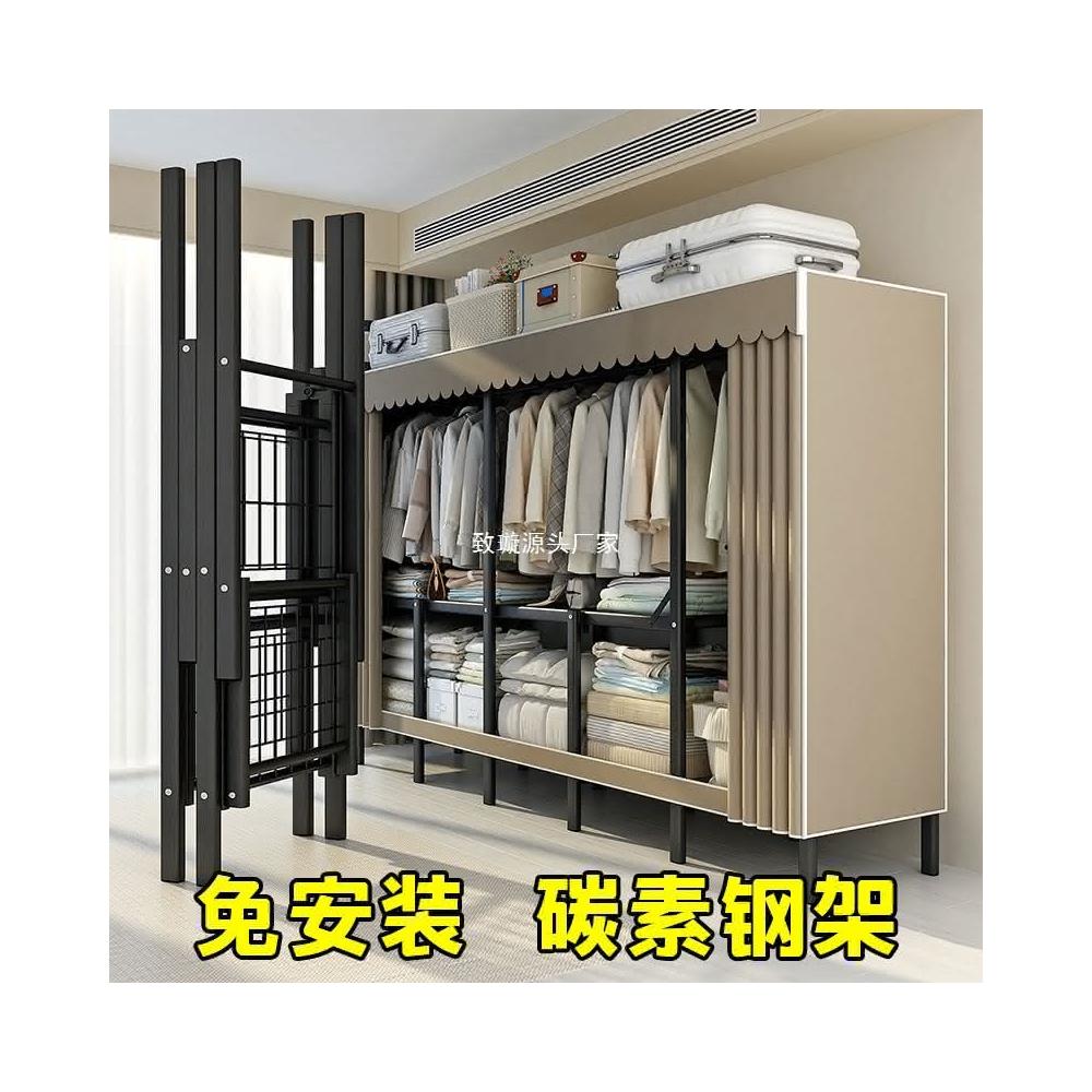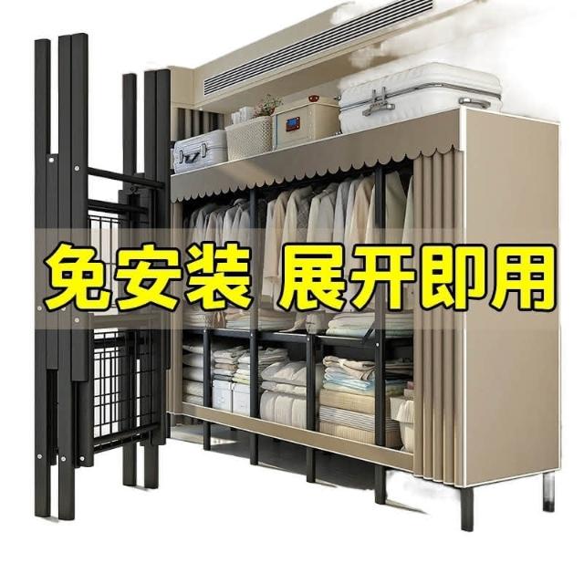 折疊衣櫃免安裝簡易布衣櫃鋼管加厚出租房臥室家用組裝衣服置物架