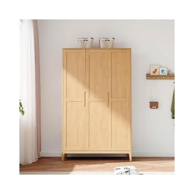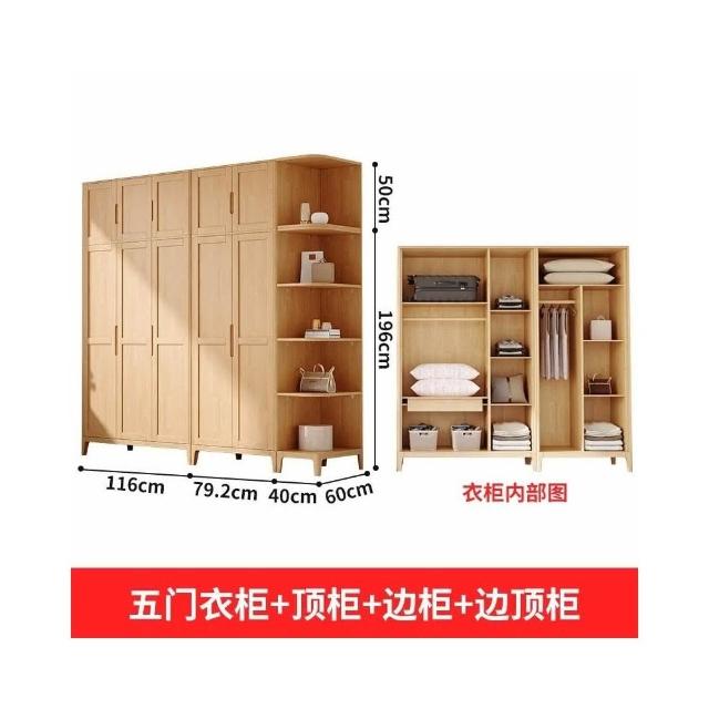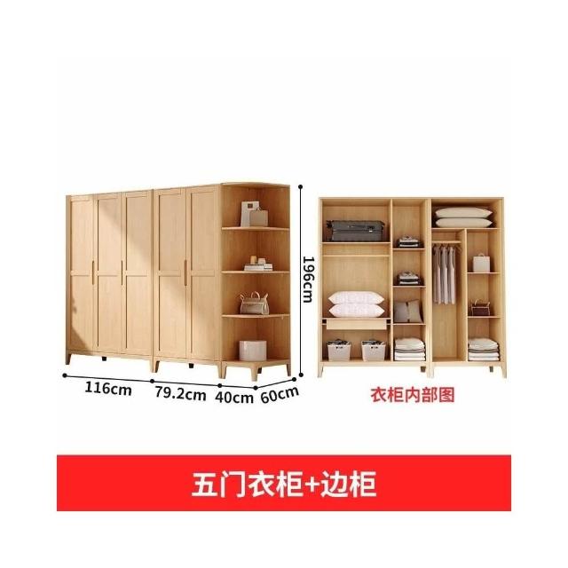 北歐實木衣櫃日式組裝收納櫃子家用衣櫥臥室民宿傢俱兩門原木衣櫃