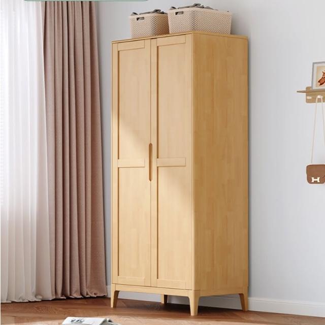 北歐實木衣櫃日式組裝收納櫃子家用臥室衣櫥民宿傢俱兩門推拉衣櫃