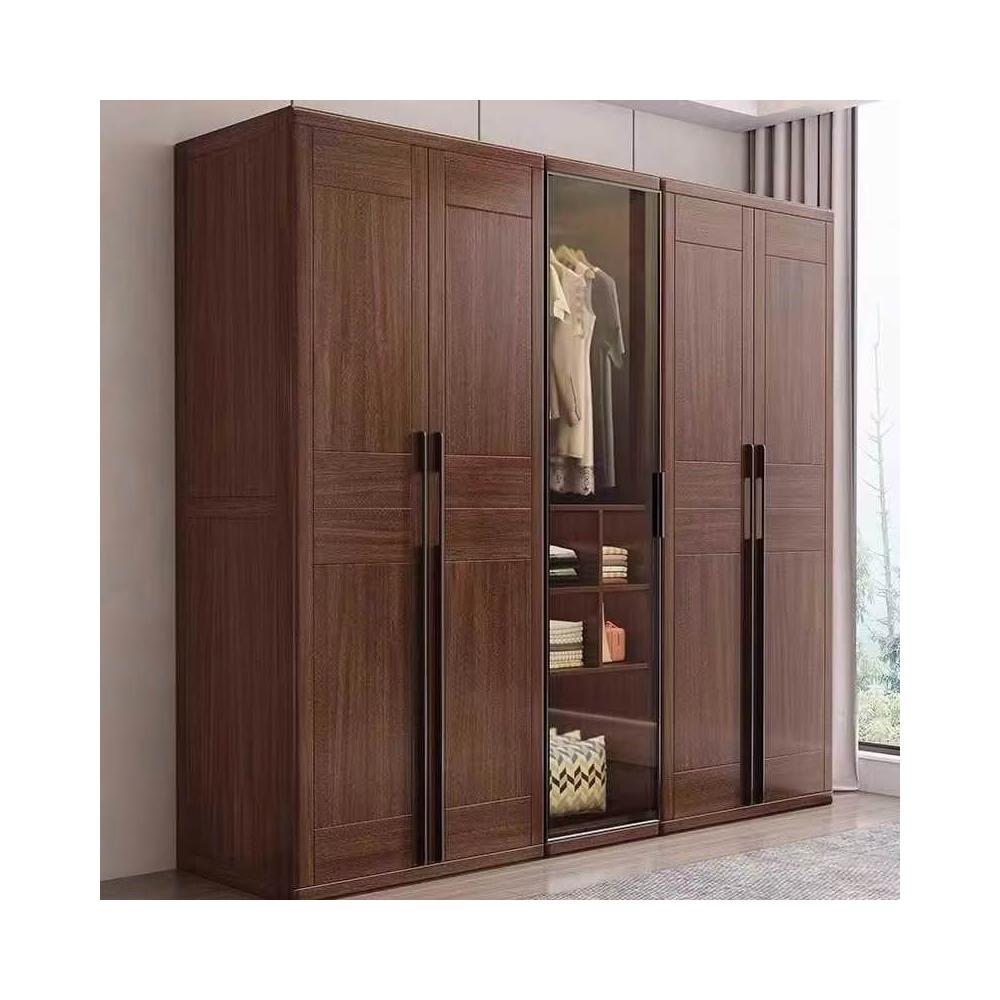 胡桃木衣櫃家用臥室實木大衣櫥北歐簡約原木雙門四門收納衣櫃組合