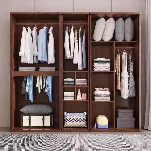 胡桃木衣櫃家用臥室實木大衣櫥北歐簡約原木雙門四門收納衣櫃組合