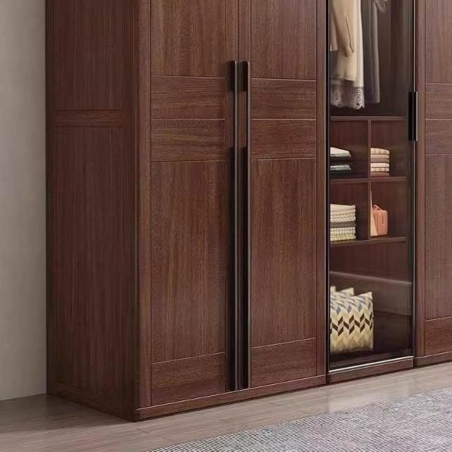 胡桃木衣櫃家用臥室實木大衣櫥北歐簡約原木雙門四門收納衣櫃組合