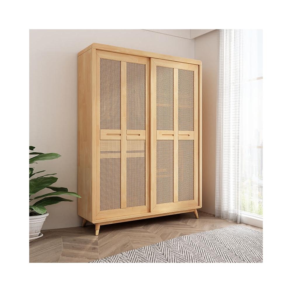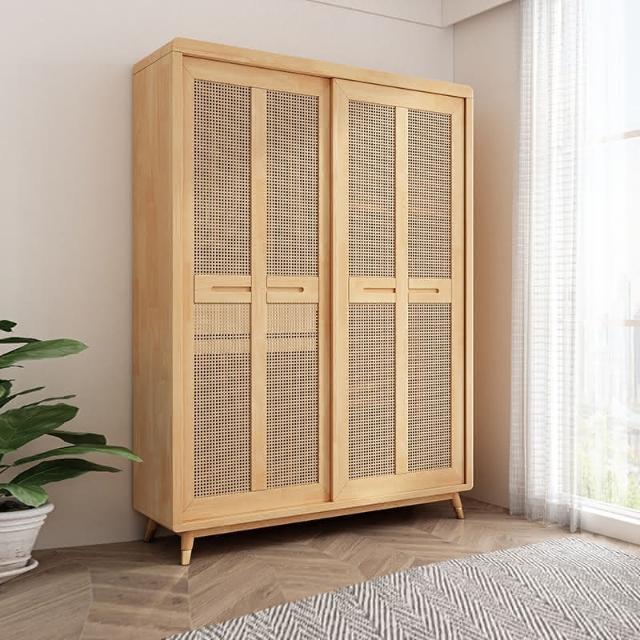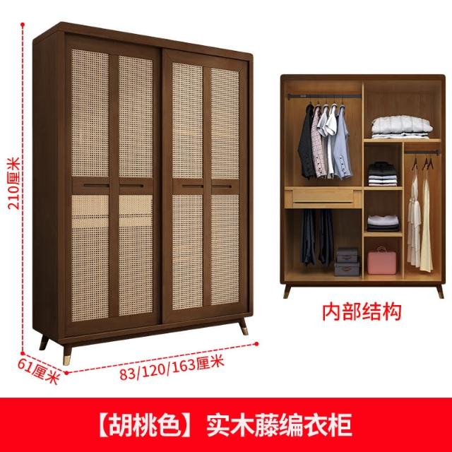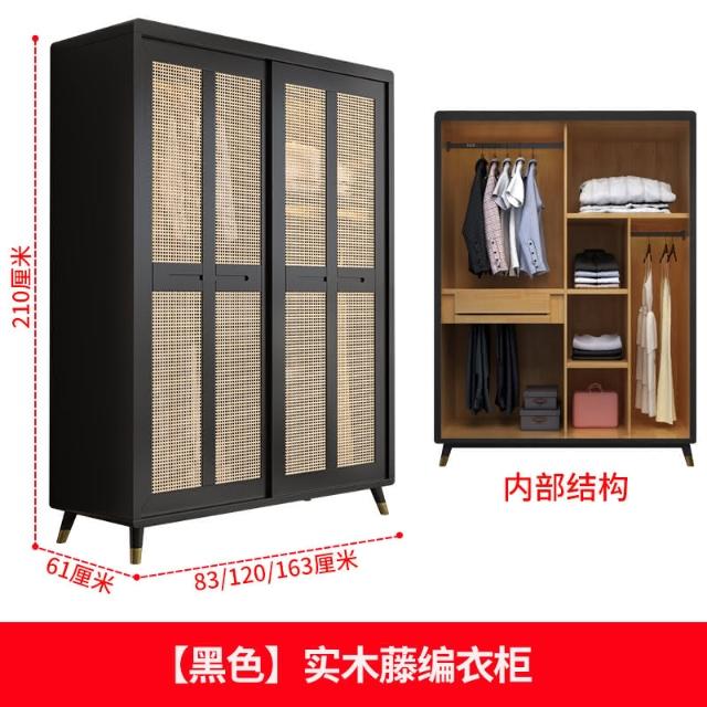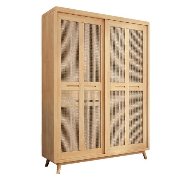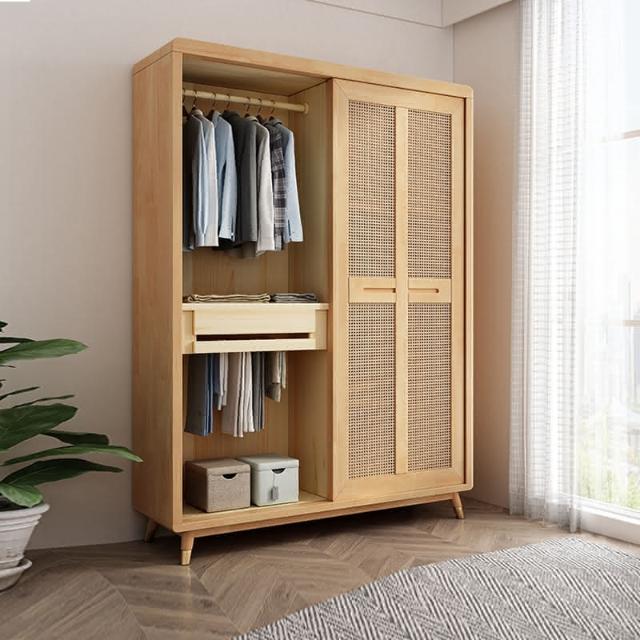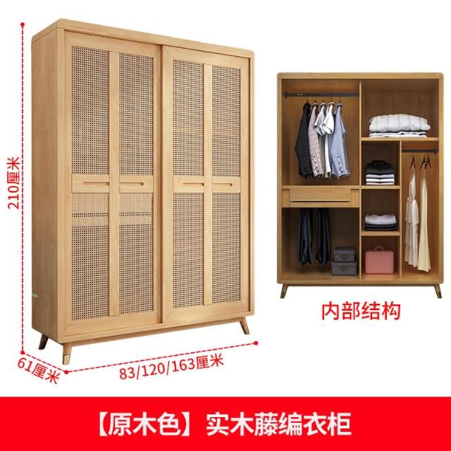 北歐實木藤編衣櫃家用臥室衣櫥現代簡約雙門組合櫃日式收納儲物櫃