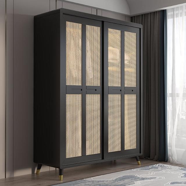北歐實木藤編衣櫃家用臥室衣櫥現代簡約雙門組合櫃日式收納儲物櫃