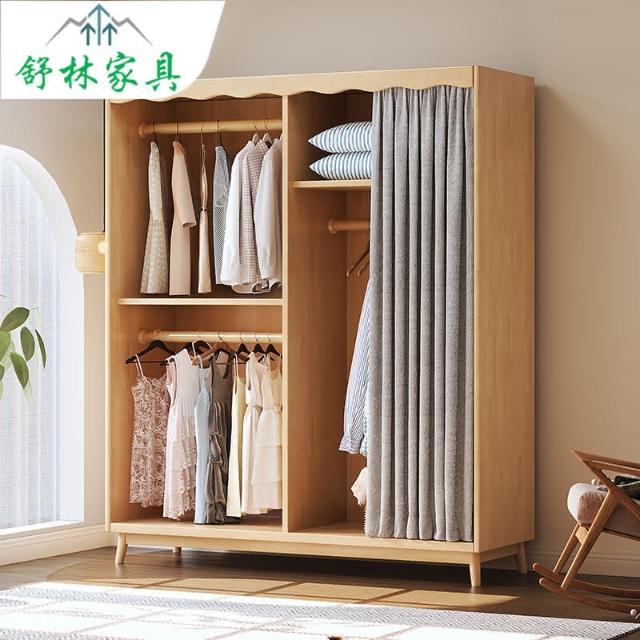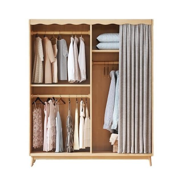 北歐全實木衣櫃小戶型家用防塵布簾衣櫥現代簡約大容量收納儲物櫃