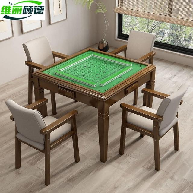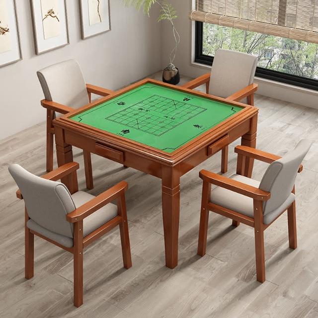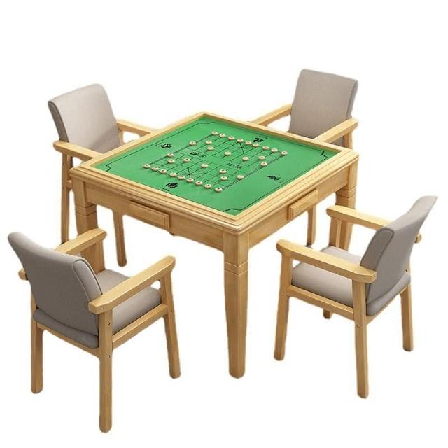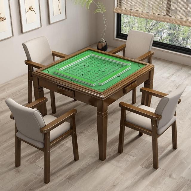 实木麻将桌餐桌两用象棋现代简约折叠家用简易手动棋牌桌椅组合