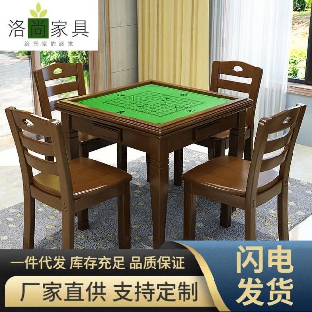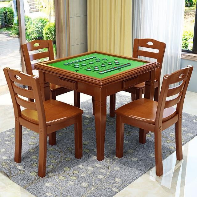 实木麻将桌餐桌两用象棋桌现代简约折叠家用简易手动棋牌桌椅组合