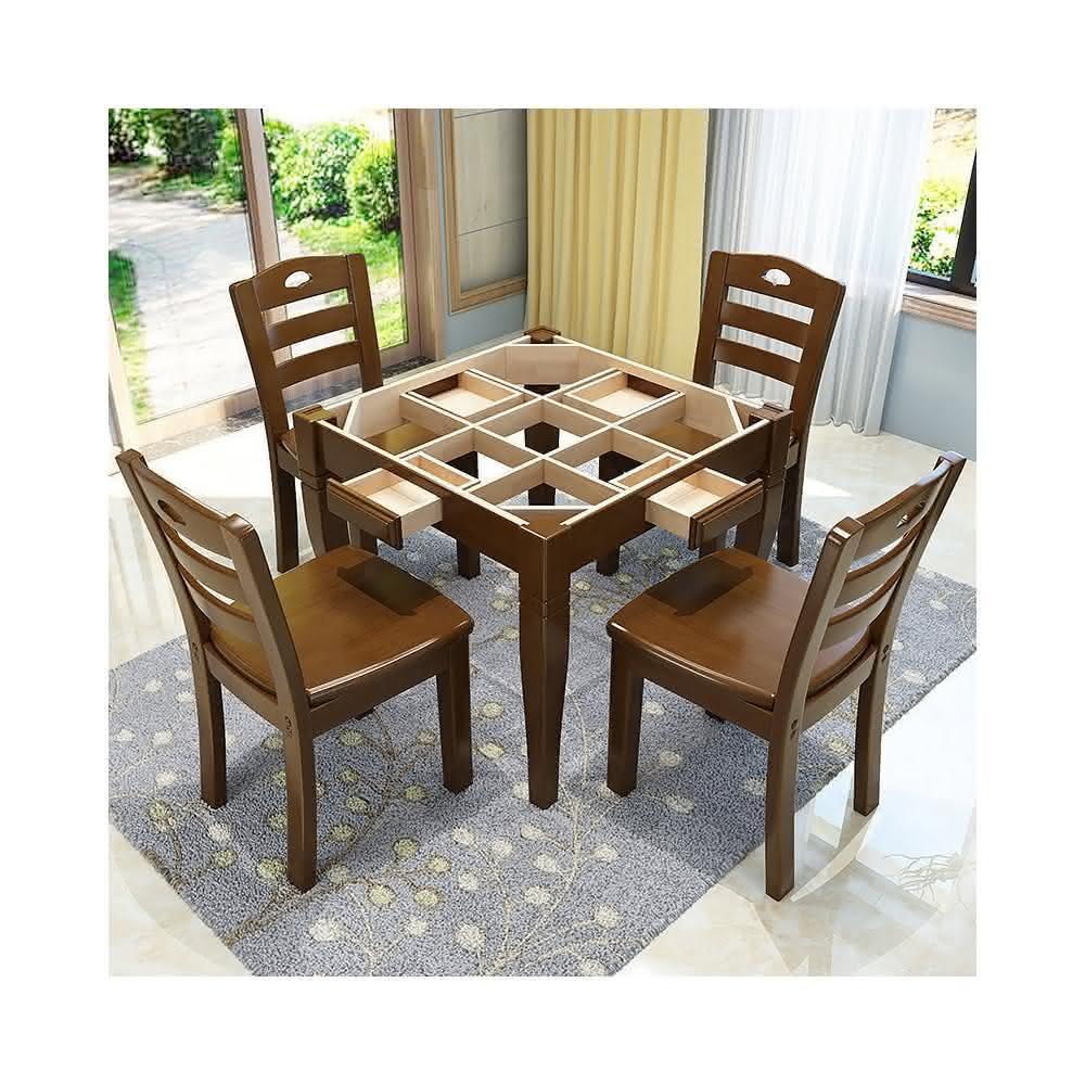 实木麻将桌餐桌两用象棋桌现代简约折叠家用简易手动棋牌桌椅组合