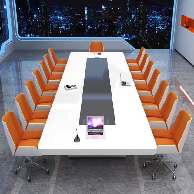 烤漆会议桌长桌简约现代家具白色中大型洽谈桌会议室办公桌椅组合