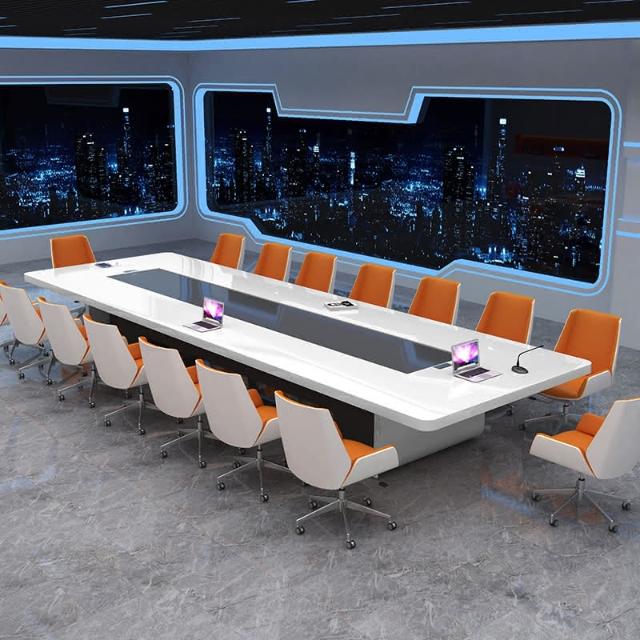 烤漆会议桌长桌简约现代家具白色中大型洽谈桌会议室办公桌椅组合