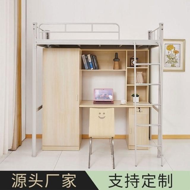 廠家免運 衣櫃書桌一體組閤員工鐵藝床 大學學校上床下桌宿捨公寓床高架床