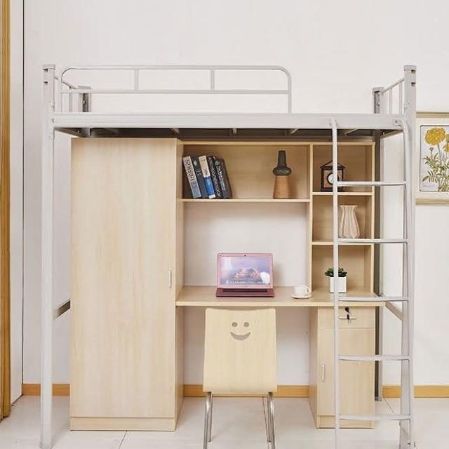 廠家免運 衣櫃書桌一體組閤員工鐵藝床 大學學校上床下桌宿捨公寓床高架床