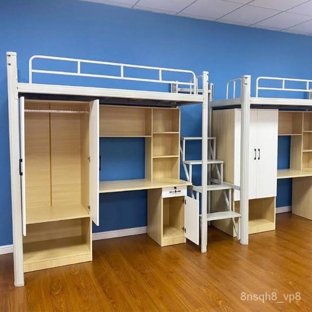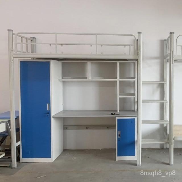廠家免運 衣櫃書桌一體組閤員工鐵藝床 大學學校上床下桌宿捨公寓床高架床