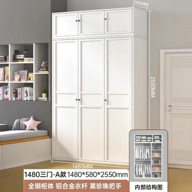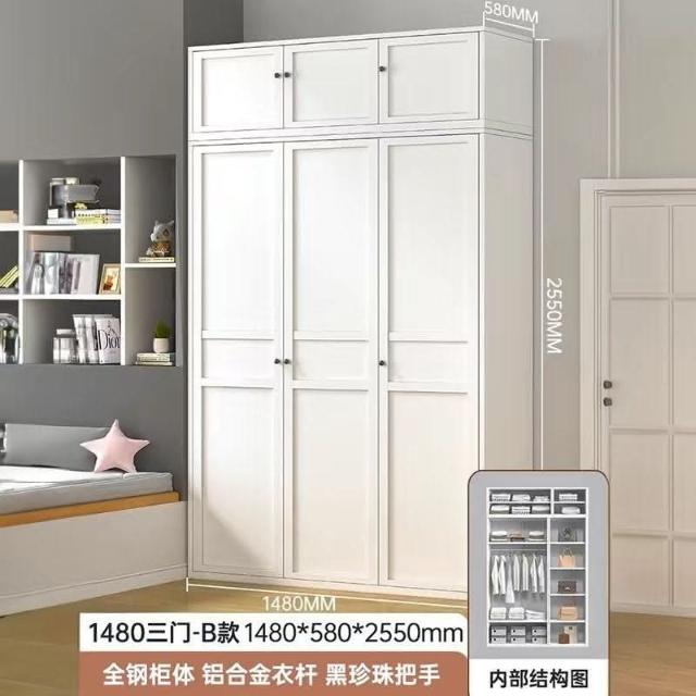 廠家免運 新款鐵藝衣櫃家用臥室鋼製簡約北歐組閤金屬儲物兒童環保鐵皮衣櫃