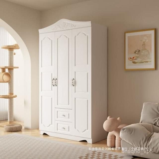 免運直發 衣櫃家用臥室歐式奶油白色實木女孩櫃子三門衣櫥小戶型公主衣服櫃
