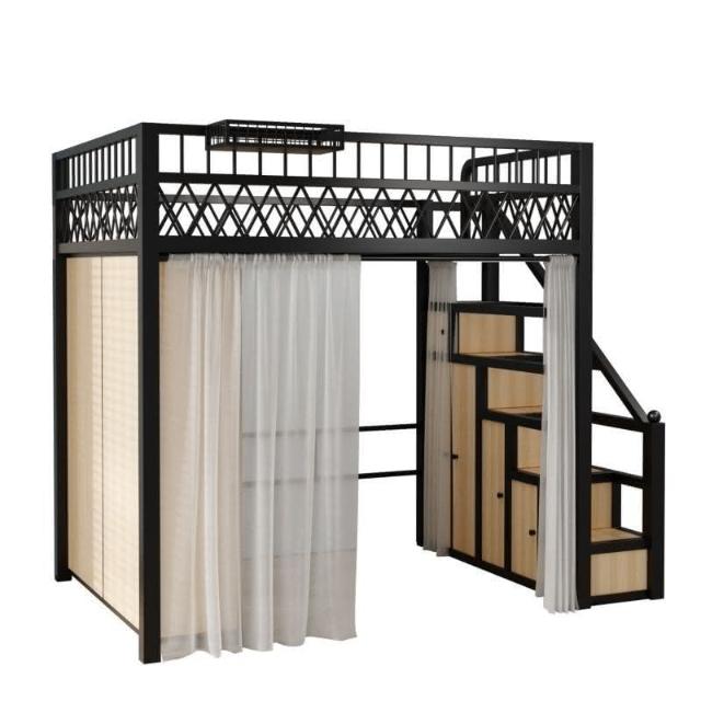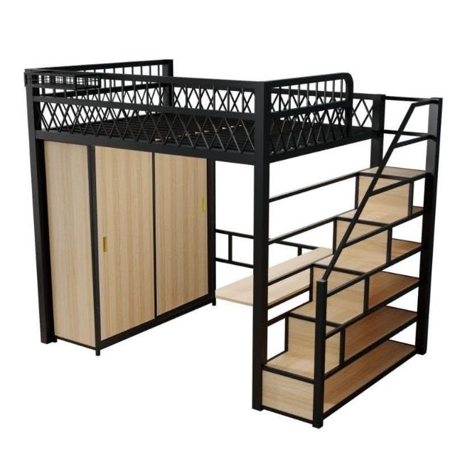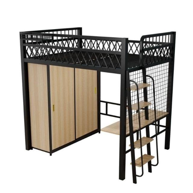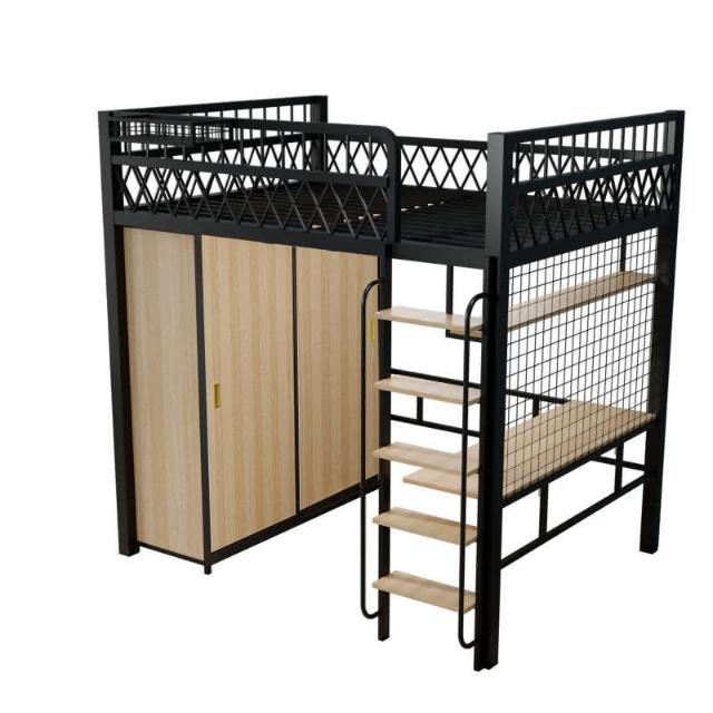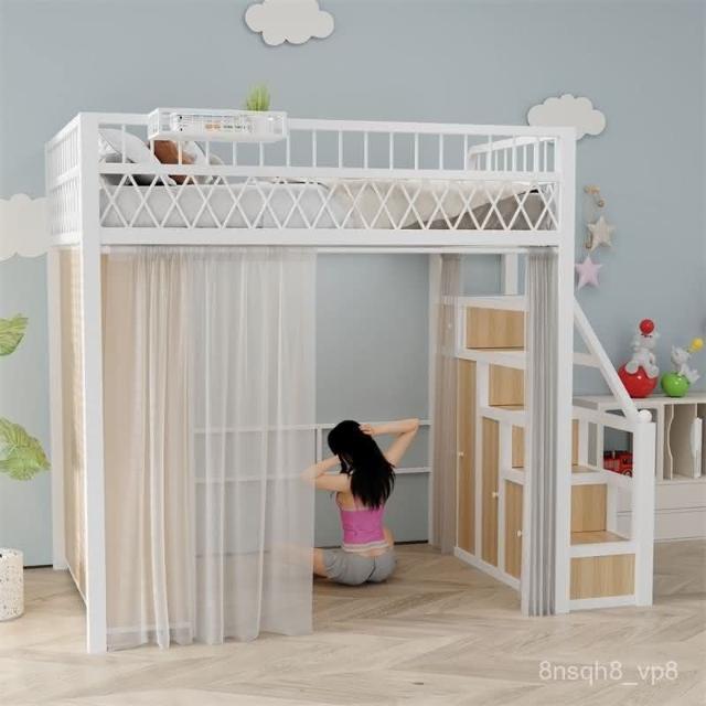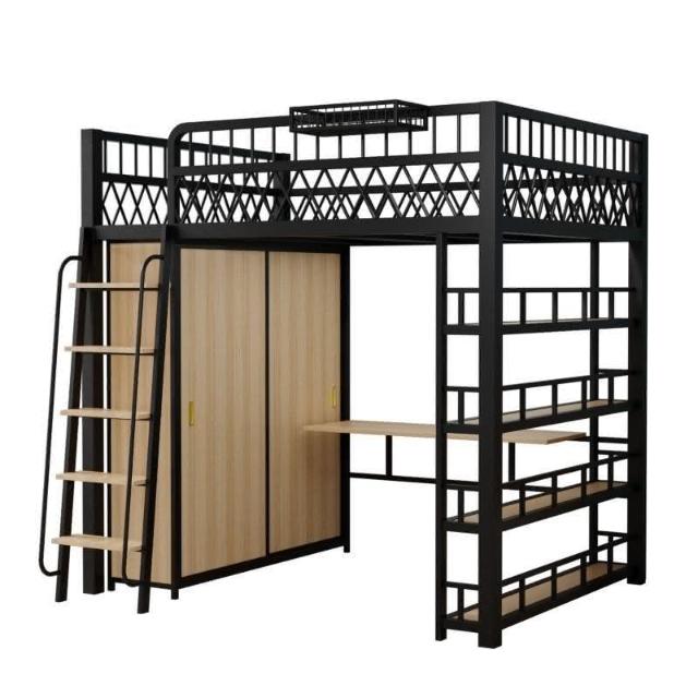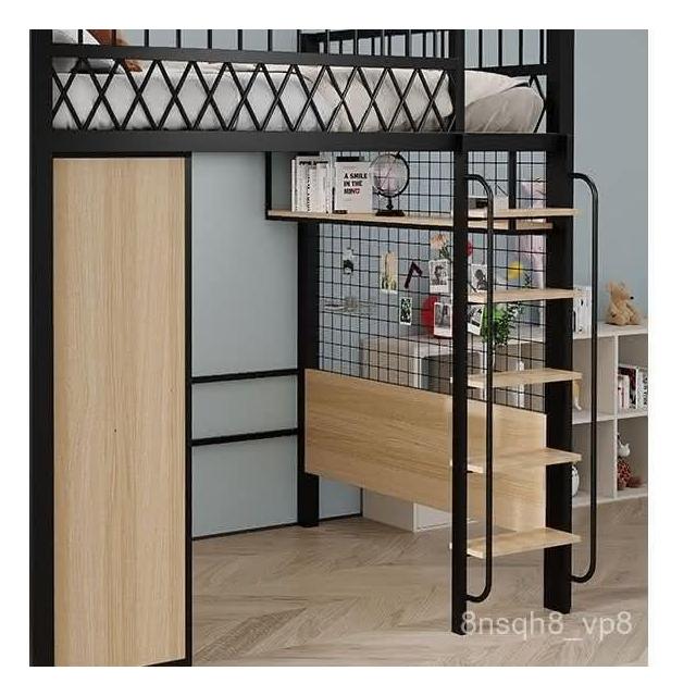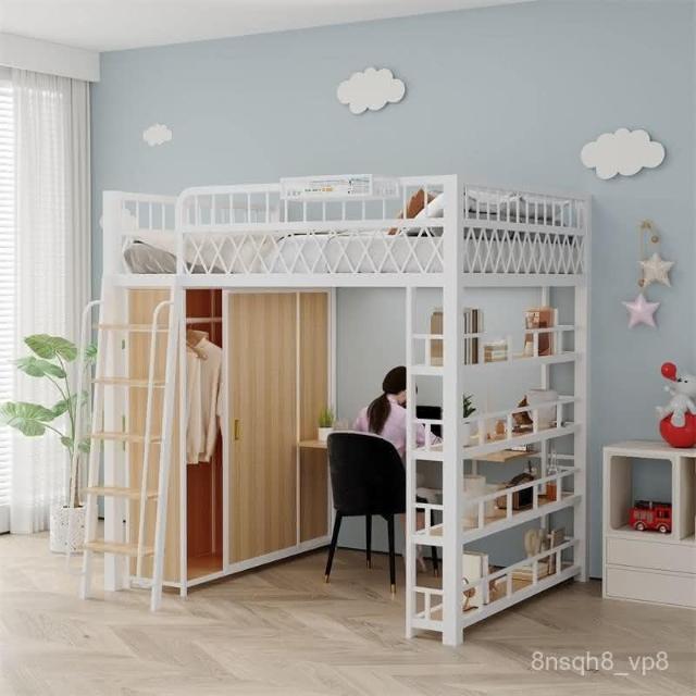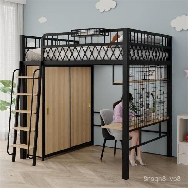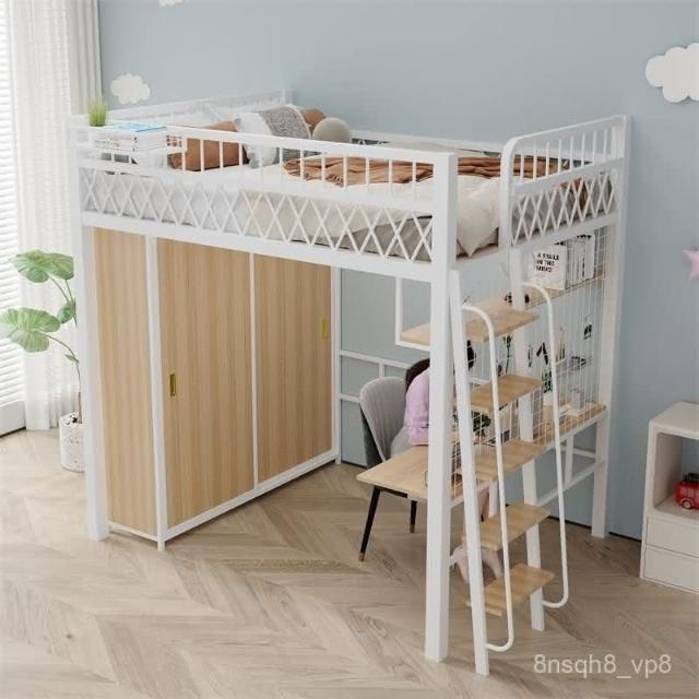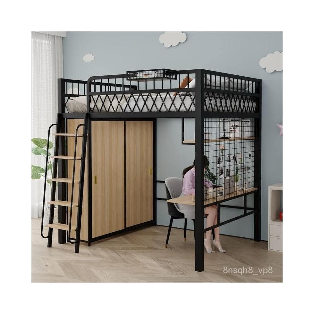 臺灣出貨 小戶型臥室單上床下衣櫃衣帽間二層閣樓鋼架床高架床上床下桌折疊
