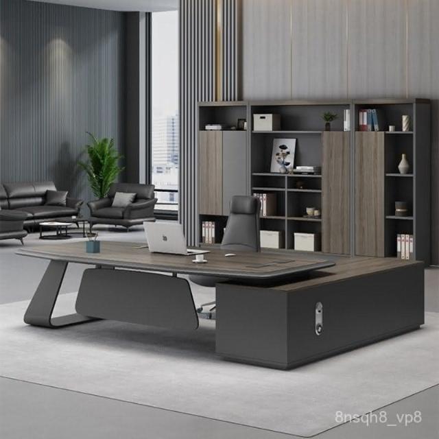廠傢直發 全臺免運 輕奢老闆桌辦公桌簡約現代董事長總裁桌大班臺經理辦公室桌椅組閤