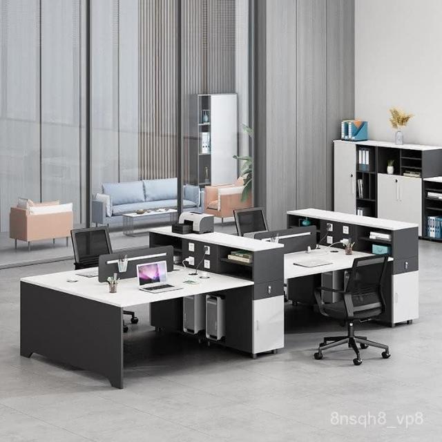 全台免運 辦公室辦公桌4//6人位現代簡約工位屏風員工職員辦公桌椅組閤雙人