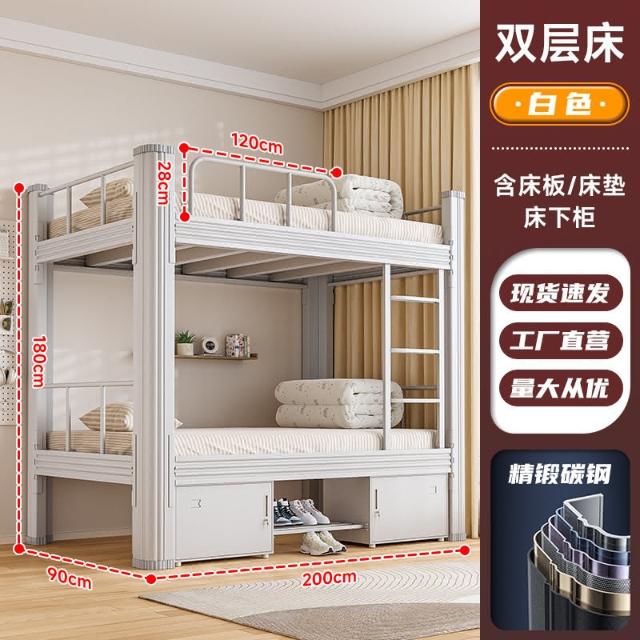 臺灣出貨 上下鋪雙層床鐵藝員工學生宿捨床公寓寢室工地雙人鐵床大人高低床