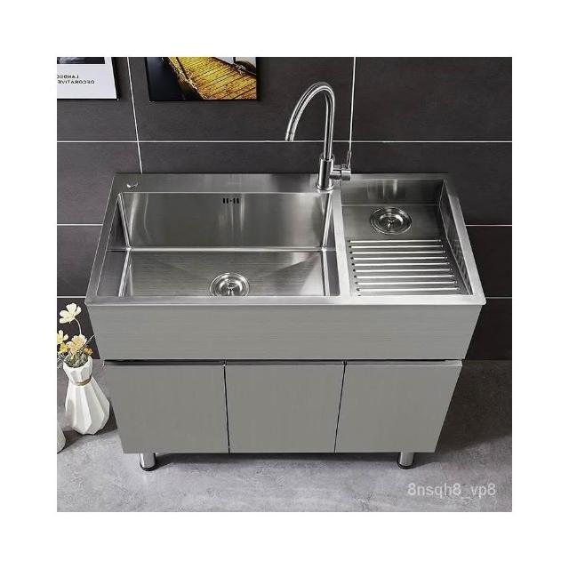 幕辭家居不銹鋼洗衣櫃 洗衣槽 陽臺水槽櫃 陽台櫃 一體櫃 帶搓板洗手池 洗臉盆 實木櫃 組閤落地櫃hn