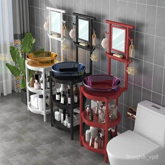 廠傢直發 免稅免運 農村老式臉盆架洗臉盆架子落地傢用簡易衛生間麵盆架帶鏡子浴室智