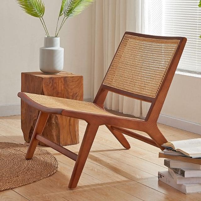 椅子 沙發椅 藤椅 北歐藤椅實木沙髮椅室內傢用藤編躺椅陽臺編織休閒真藤新中式ins DWOC