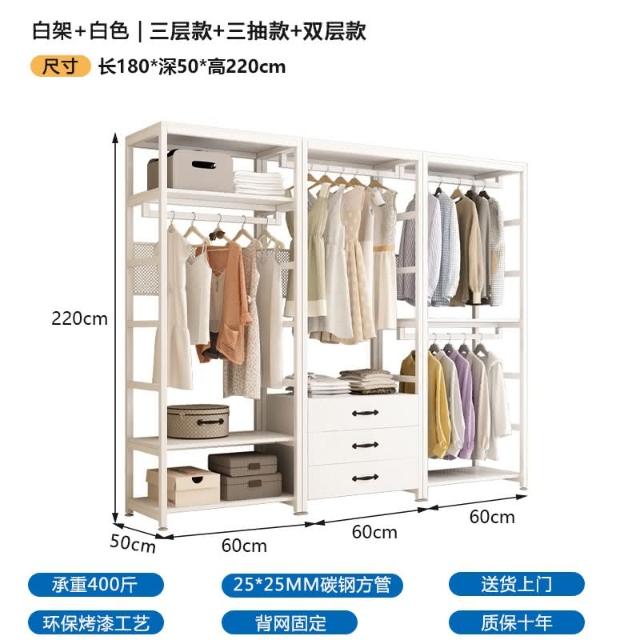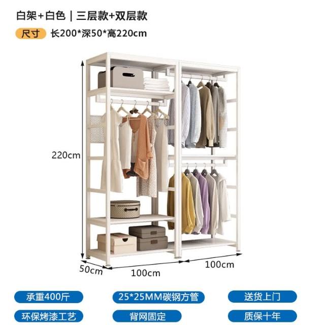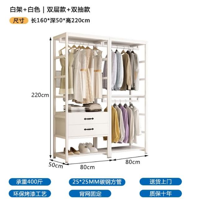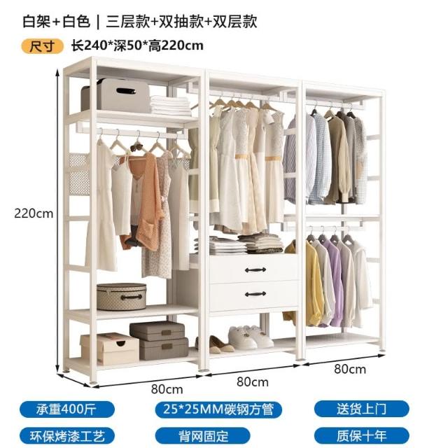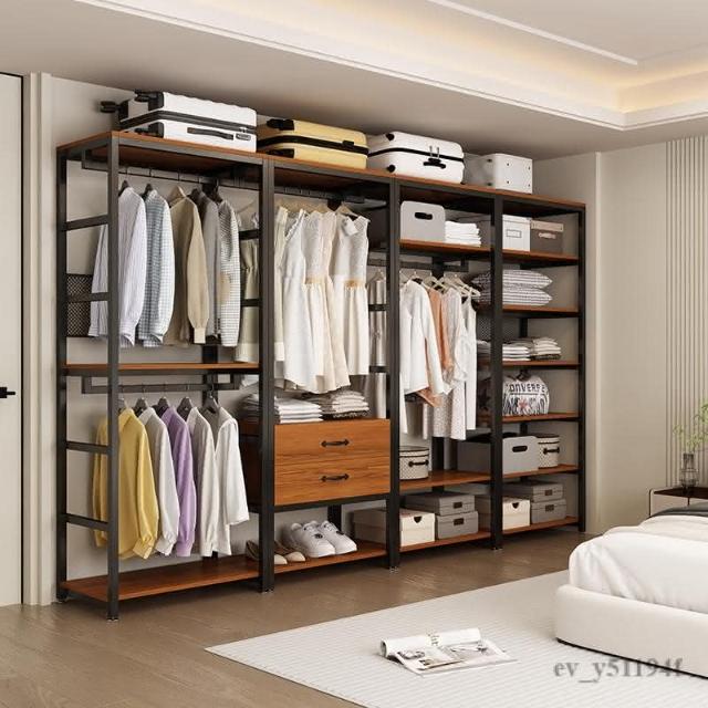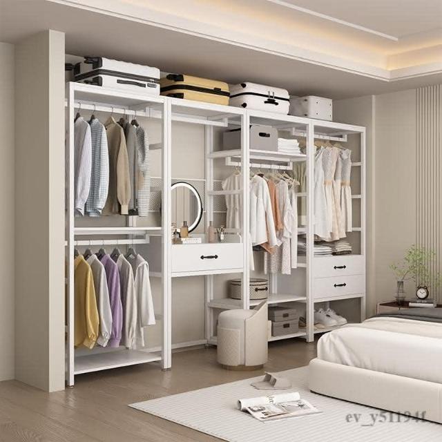 客製化 步入式衣櫃 衣帽間家用卧室衣帽架 落地式組合架子 雙層掛衣架 開放式衣櫃簡易衣櫃組合 衣櫃雙人大吊掛衣櫃 收納櫃