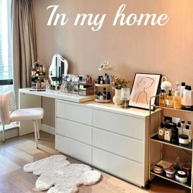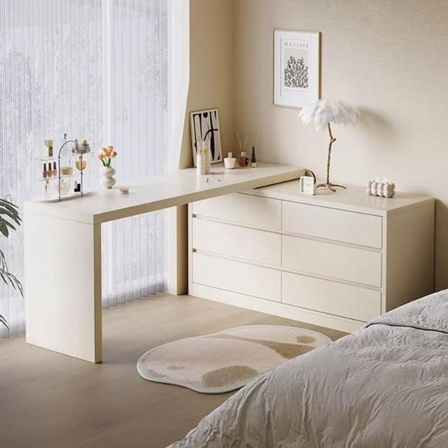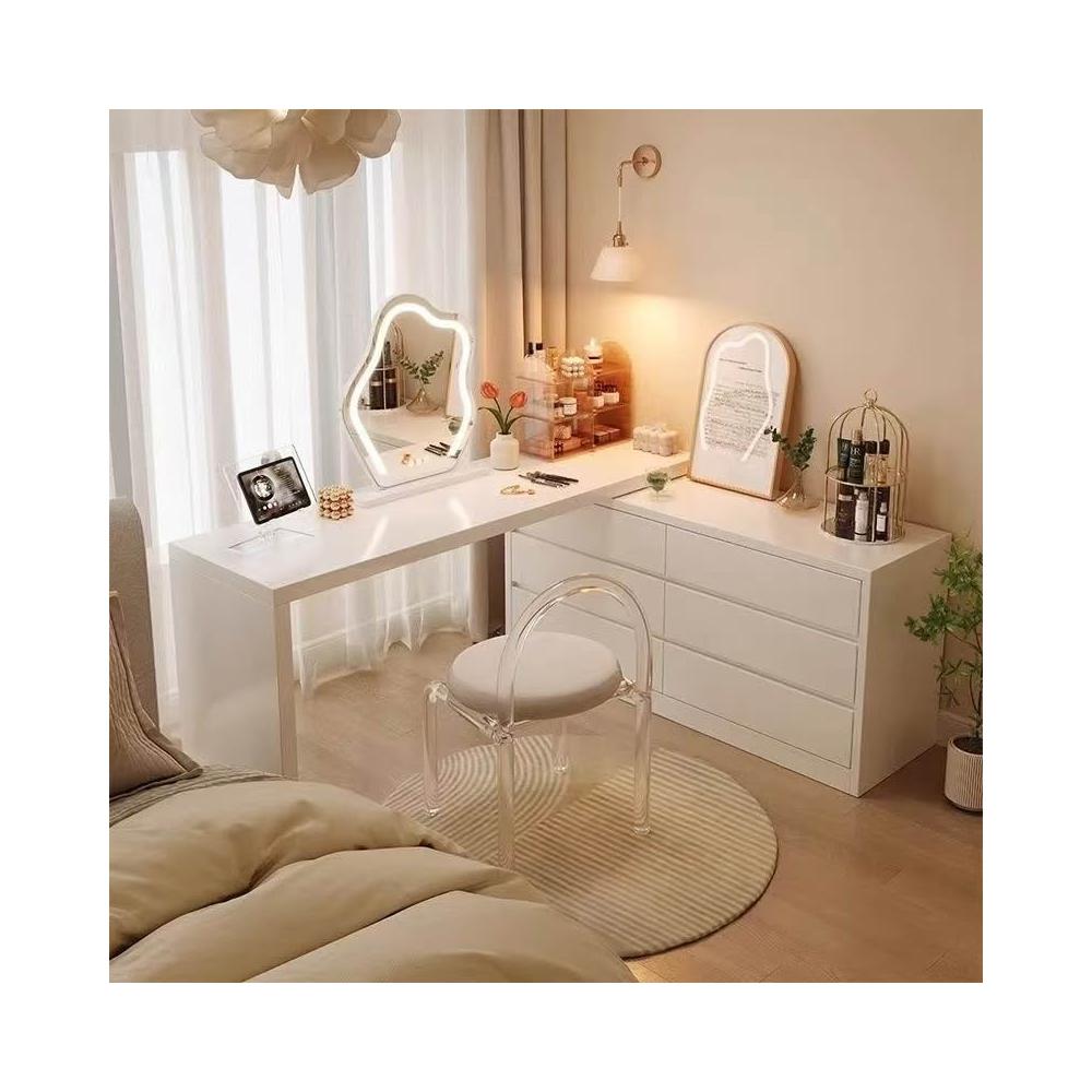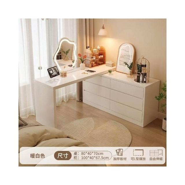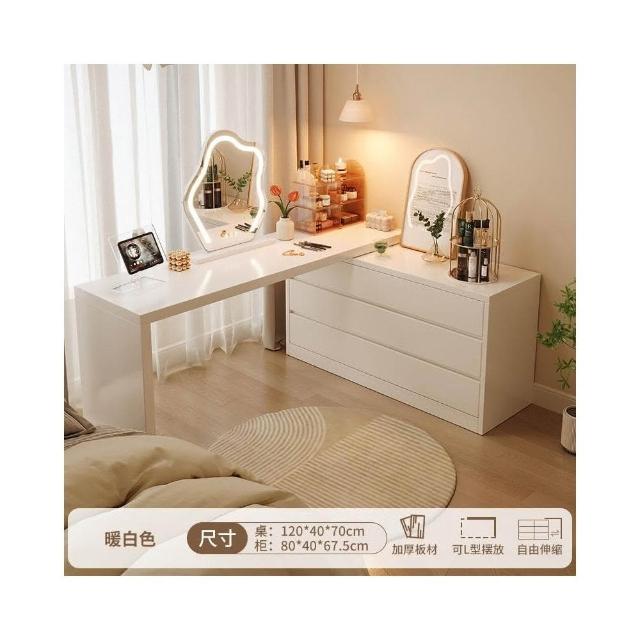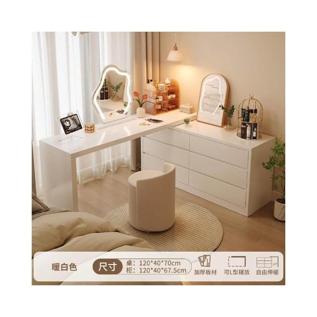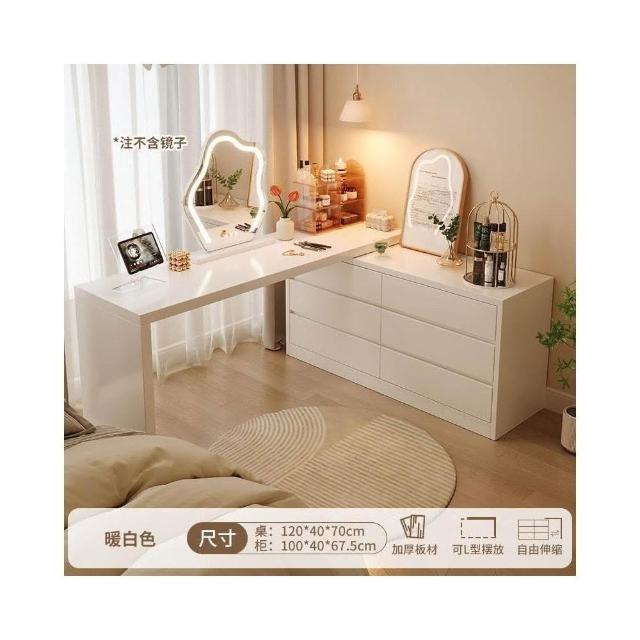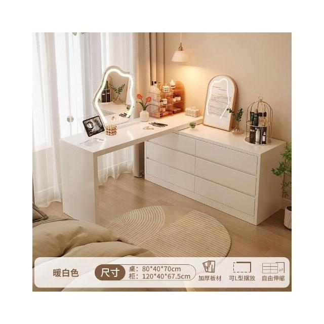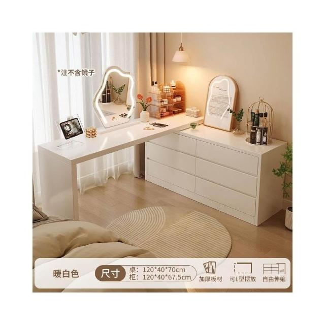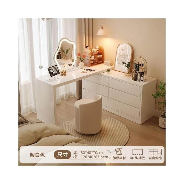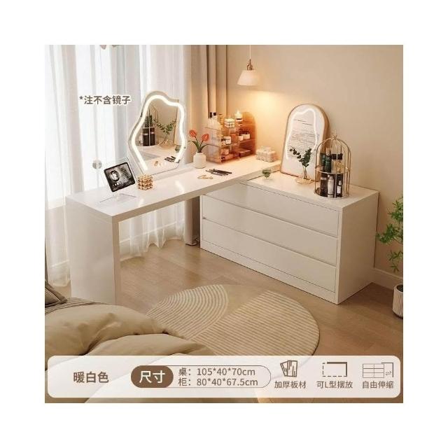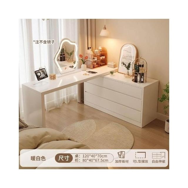 北歐簡約 免稅 梳妝臺臥室簡約現代收納鬥櫃化妝臺書桌一體組閤拐轉角L型化妝桌 多功能公主化妝桌梳妝桌輕奢北歐卧室化妝台