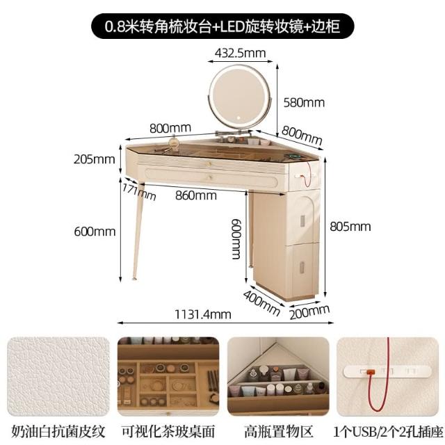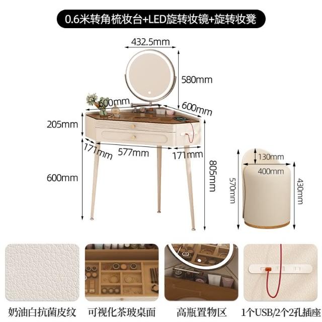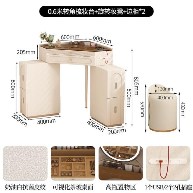 🚛24小時出貨🚛 轉角梳妝台 法式奶油小型化妝台 三角化妝桌 臥室床頭梳妝台 現代簡約 墻角斗櫃一體梳妝桌
