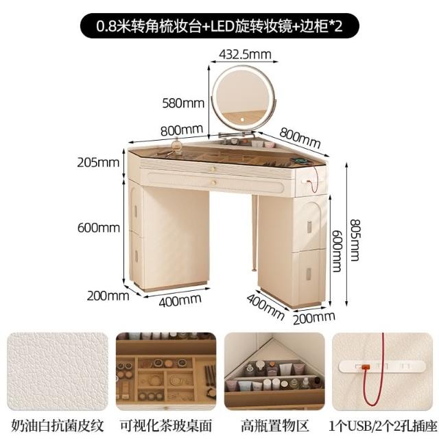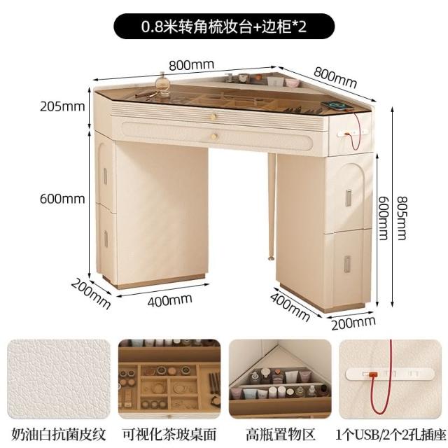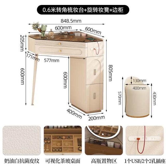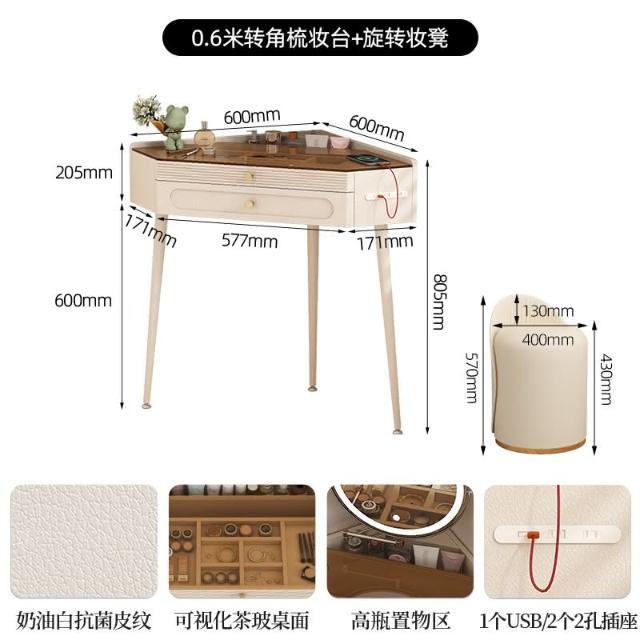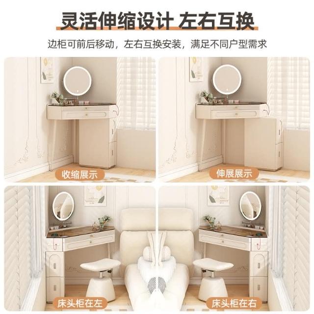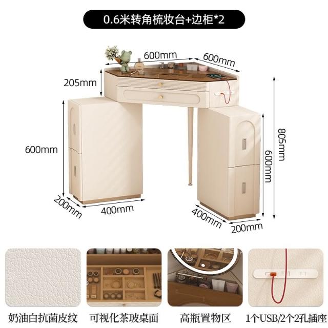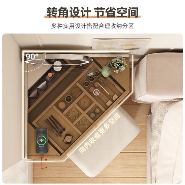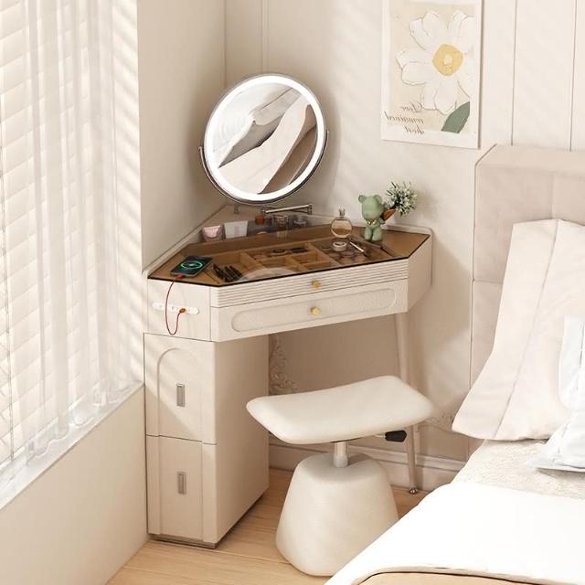 🚛24小時出貨🚛 轉角梳妝台 法式奶油小型化妝台 三角化妝桌 臥室床頭梳妝台 現代簡約 墻角斗櫃一體梳妝桌