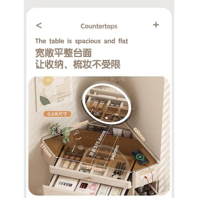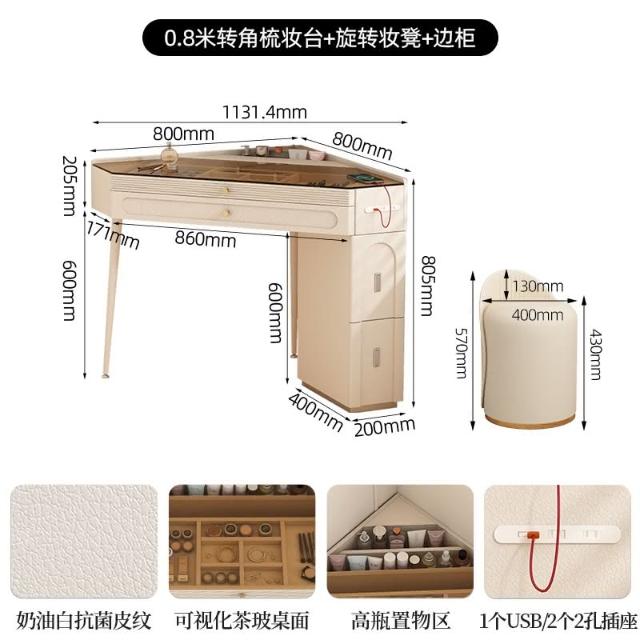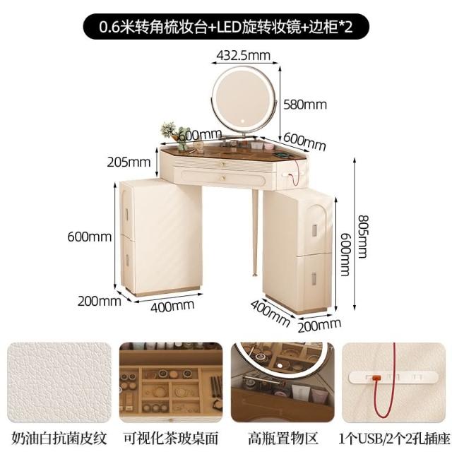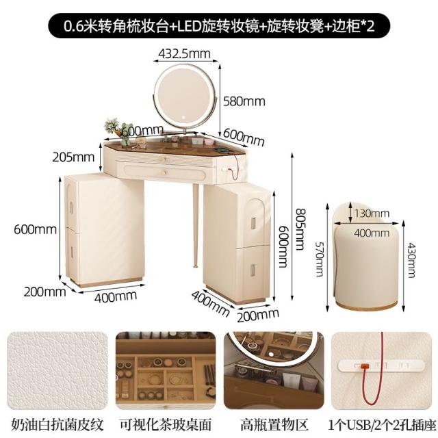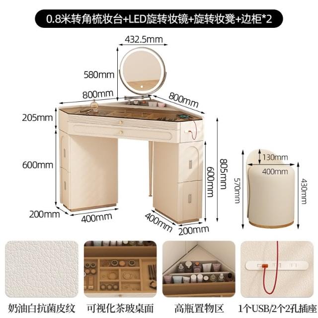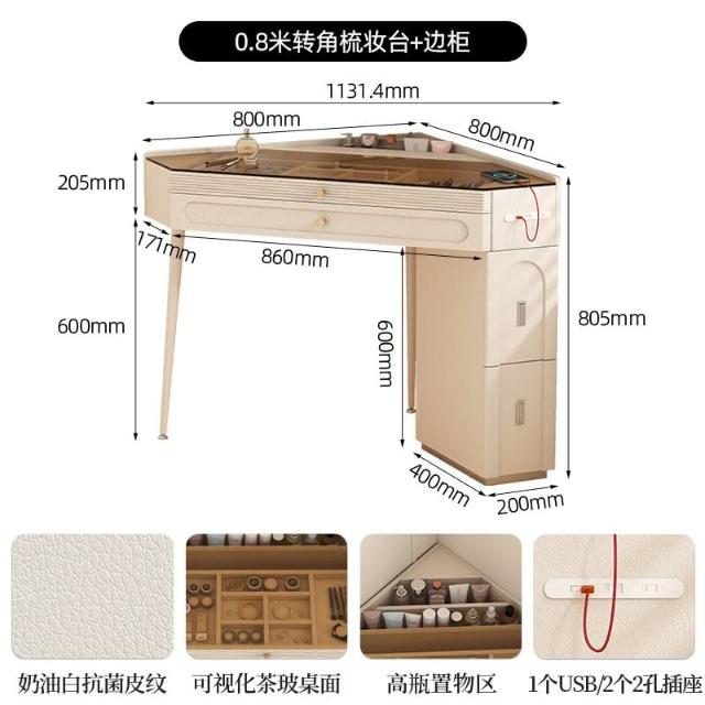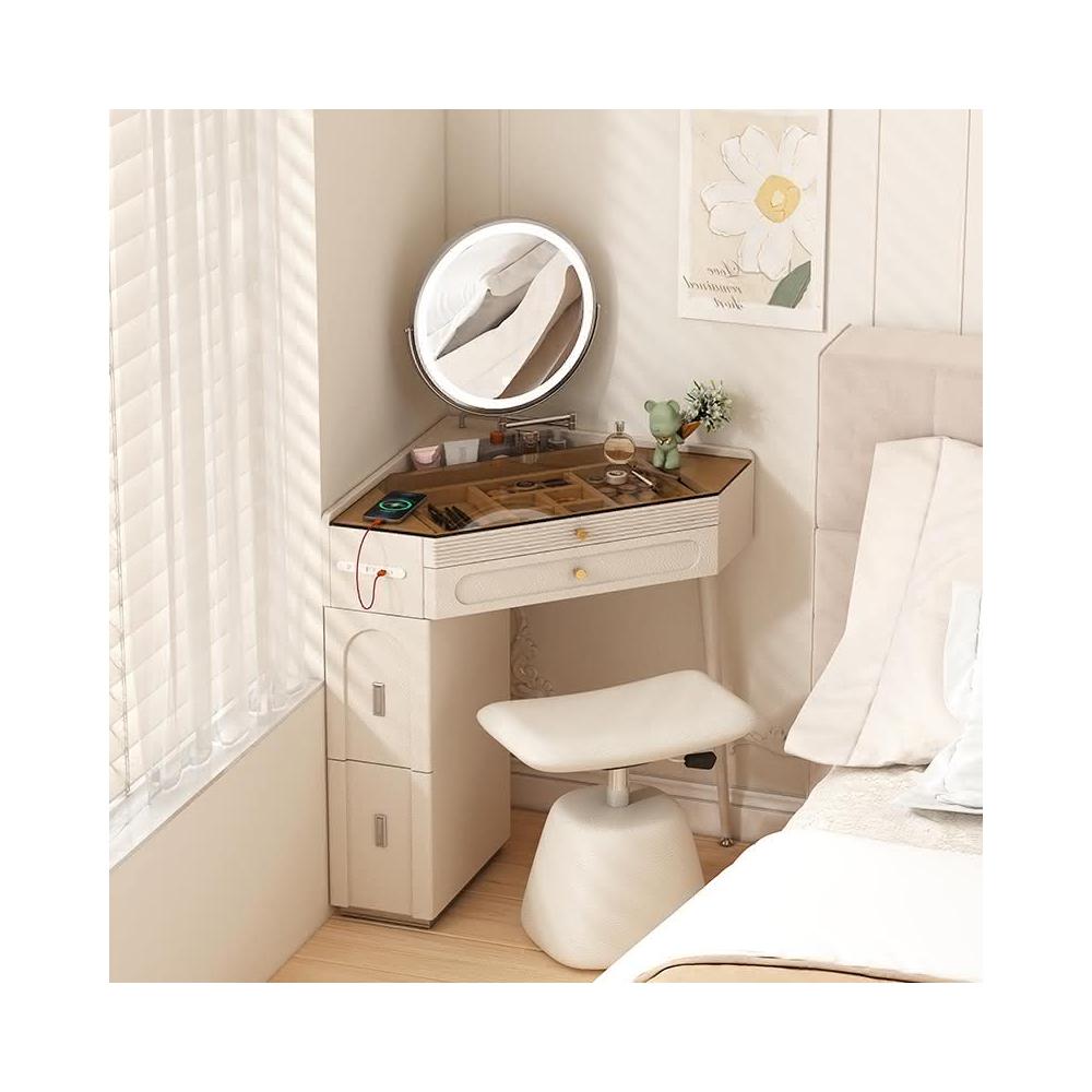 🚛24小時出貨🚛 轉角梳妝台 法式奶油小型化妝台 三角化妝桌 臥室床頭梳妝台 現代簡約 墻角斗櫃一體梳妝桌