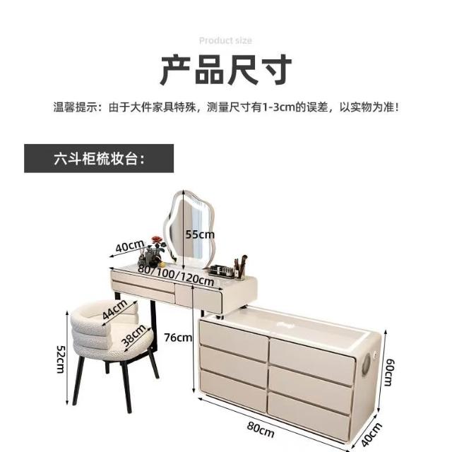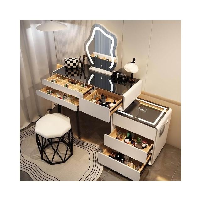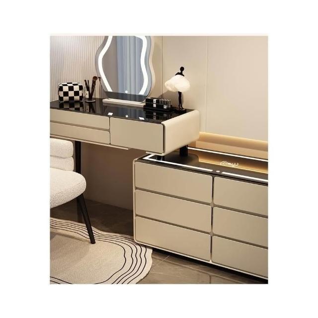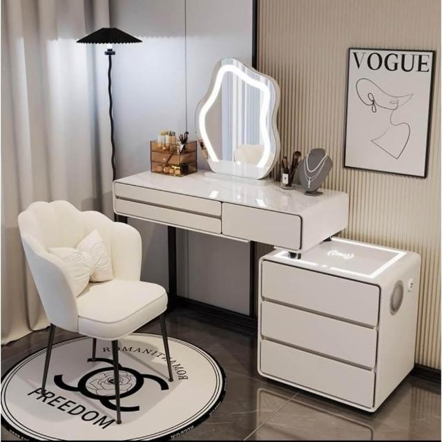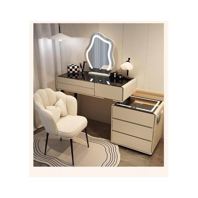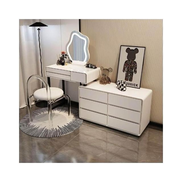 免組裝 可擺L型 梳妝台 奶油風 白色實木岩板 六鬥邊櫃 卧室 化妝臺 收納櫃 轉角斗櫃 伸縮一體 化妝桌 化妝台hna