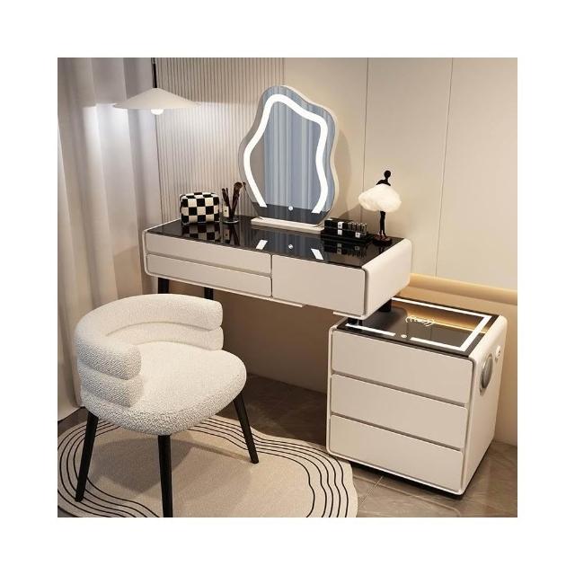 免組裝 可擺L型 梳妝台 奶油風 白色實木岩板 六鬥邊櫃 卧室 化妝臺 收納櫃 轉角斗櫃 伸縮一體 化妝桌 化妝台hna