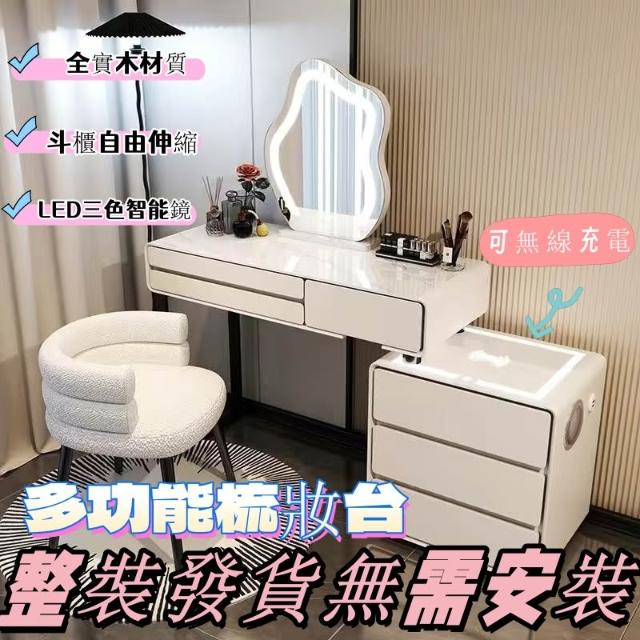 免組裝 可擺L型 梳妝台 奶油風 白色實木岩板 六鬥邊櫃 卧室 化妝臺 收納櫃 轉角斗櫃 伸縮一體 化妝桌 化妝台hna