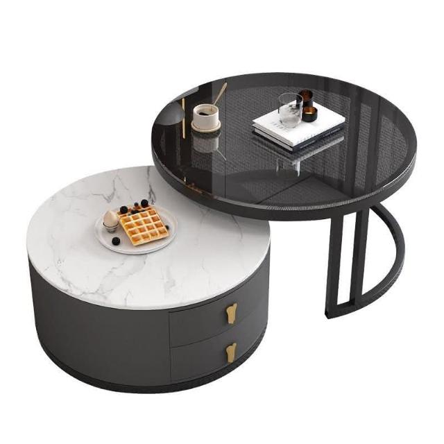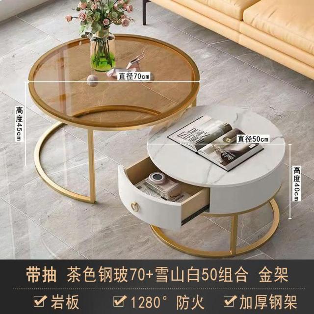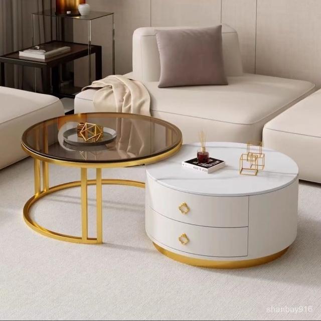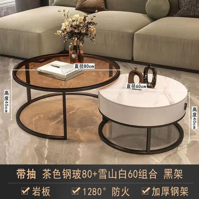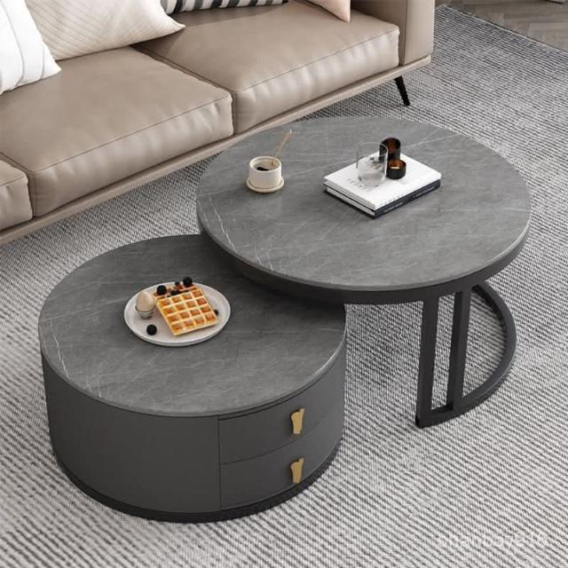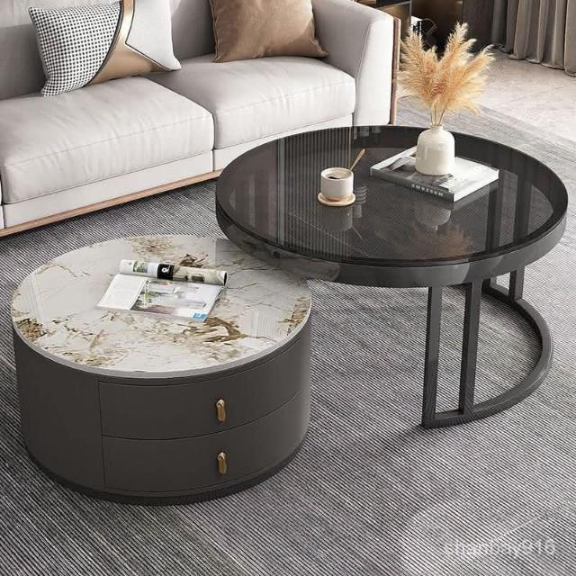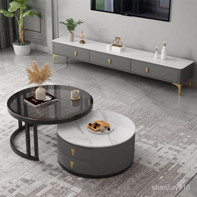 現貨/免運 客廳茶几 岩板茶几 大理石茶几 圓形茶幾 茶几組閤 簡約 現代 小戶型 北歐 網紅小茶幾 桌客廳傢用