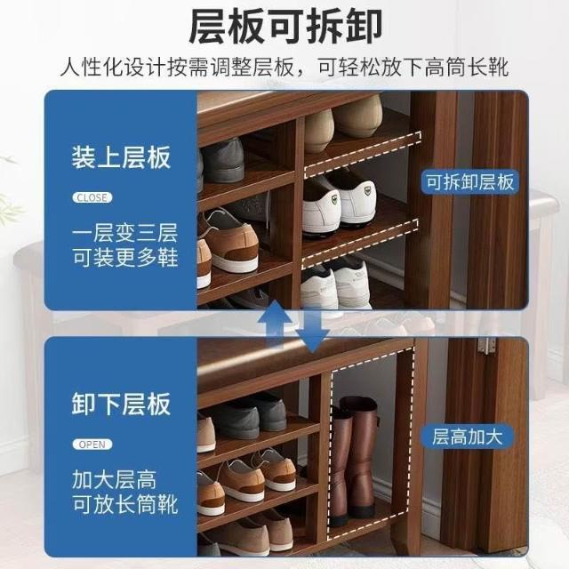 幕辭家居實木換鞋凳傢用門口鞋櫃坐凳一體可坐式入戶穿鞋凳進門凳多層鞋架 穿鞋凳 換鞋凳 椅凳 門椅 收納穿鞋椅 鞋櫃iko