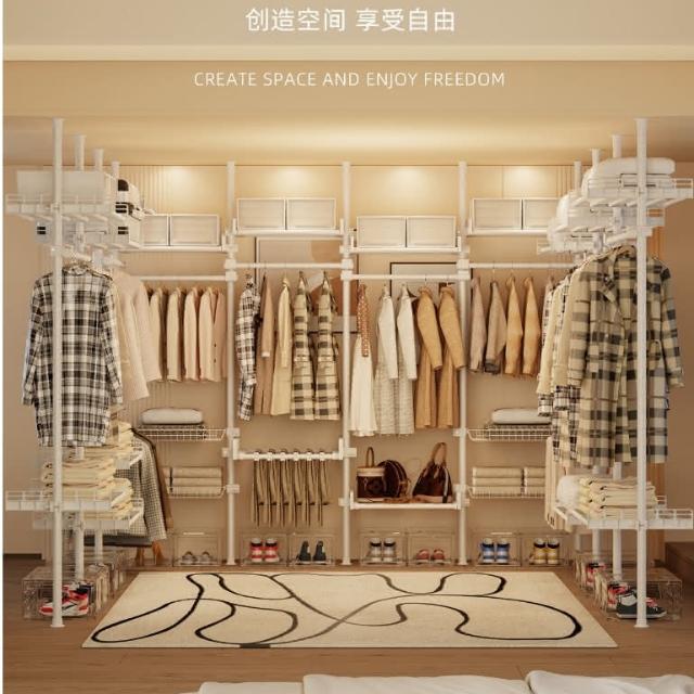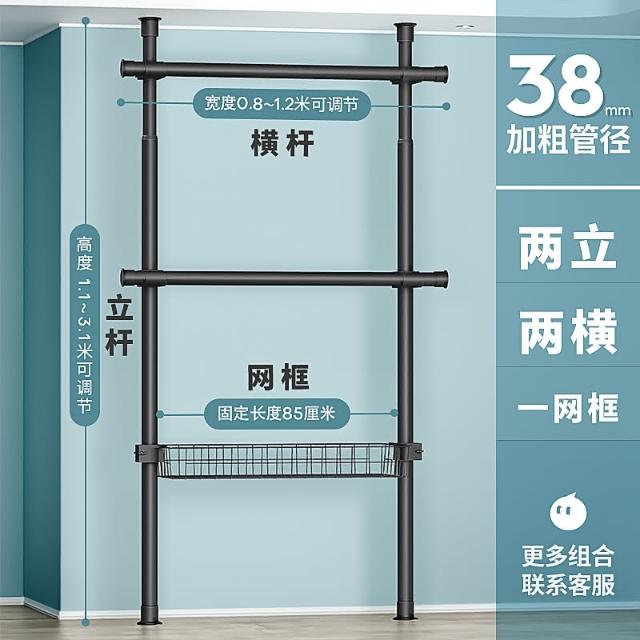 免運 台灣公司 免打孔晾衣架 頂天立地衣架2.0 傢用掛衣架 伸縮晾衣桿 高承重 管徑加粗38mm 衣帽架 簡易衣櫥