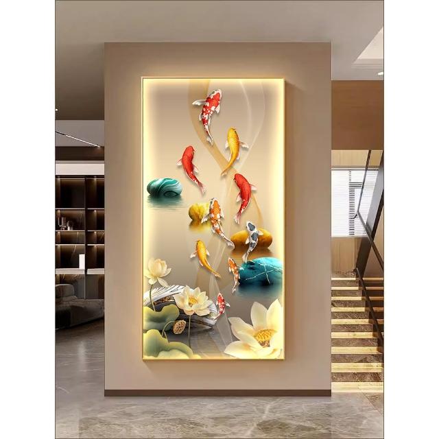九魚圖玄關裝飾畫現代輕奢led燈畫高級感入戶走廊過道寓意好壁畫 高檔LED發光畫 晶瓷畫 29862411509