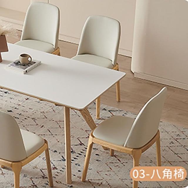 岩板餐桌 純白岩板餐桌椅組合北歐日系原木侘寂奶油風家用長方形實木飯桌椅 破损包赔