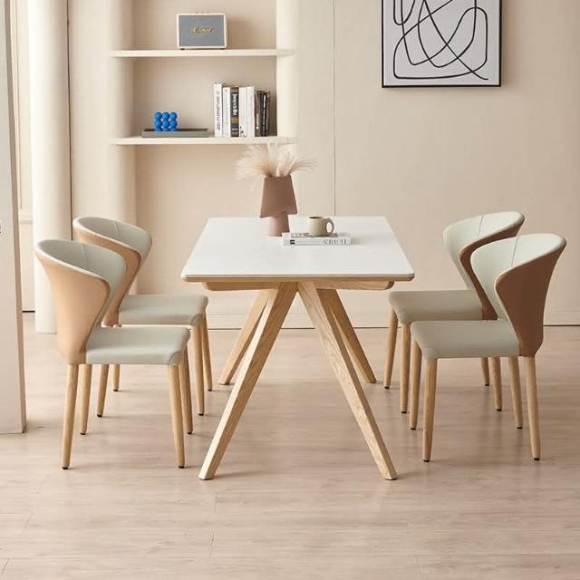 岩板餐桌 純白岩板餐桌椅組合北歐日系原木侘寂奶油風家用長方形實木飯桌椅 破损包赔