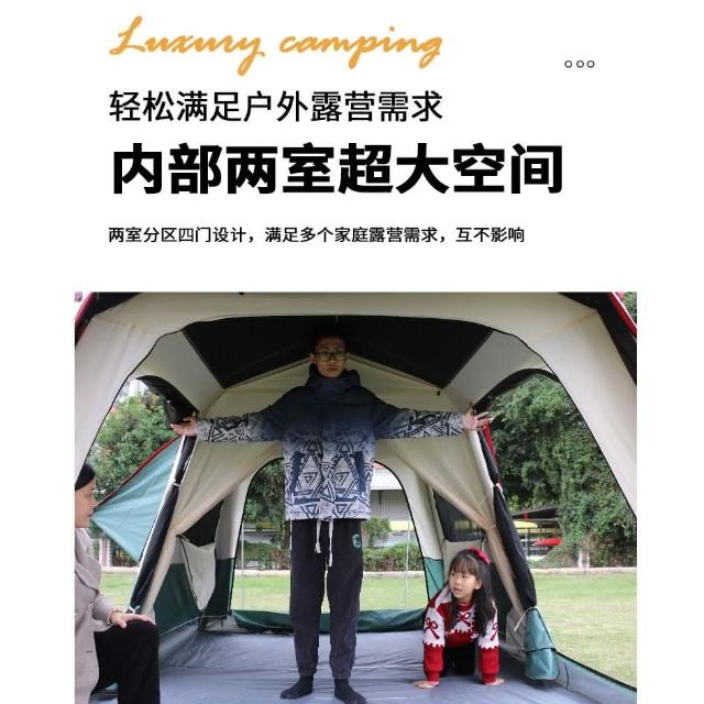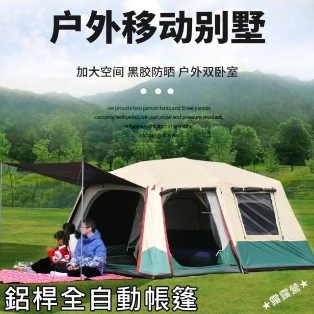 免運★露露營★戶外露營加厚黑膠兩房一廳自動鋁桿帳篷雙層防暴雨露營大帳篷