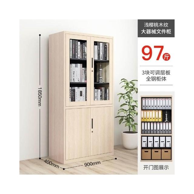 辦公室文件櫃 木紋鋼製鐵皮櫃 資料櫃 檔案櫃 書櫃 帶鎖玻璃展示櫃 矮櫃 儲物櫃子 落地置物櫃 儲物櫃 玄關櫃 收納櫃