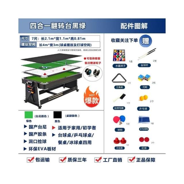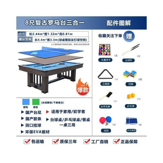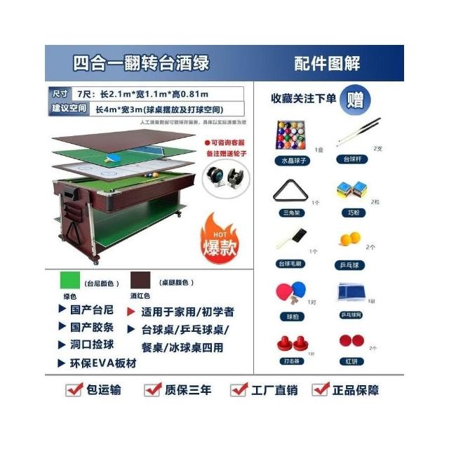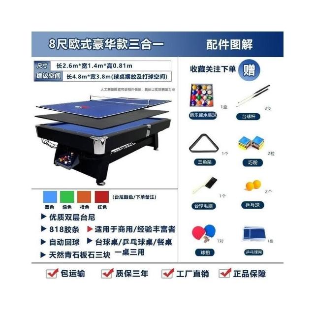 🔥可開發票 工廠直銷🔥臺球桌四閤一傢用標準型商用桌球臺傢用室內美式斯諾剋球臺乒乓桌 8OA5