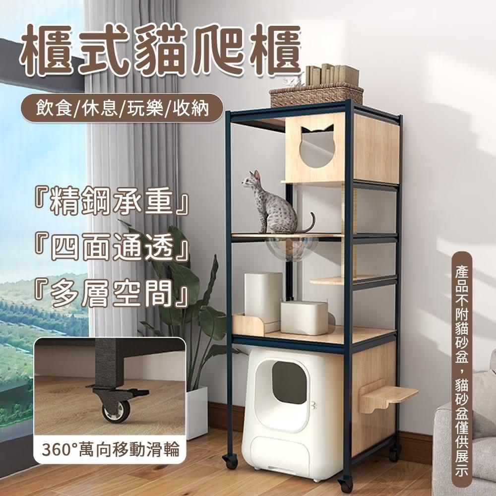 HANACO 大型貓爬櫃 適用貓砂盆外櫃 貓窩貓厠所 一體實木貓架 貓爬架