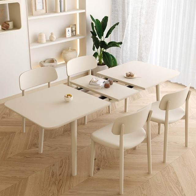 法式白色奶油風純白岩板實木餐桌可伸縮小戶型2023新款餐桌椅組合