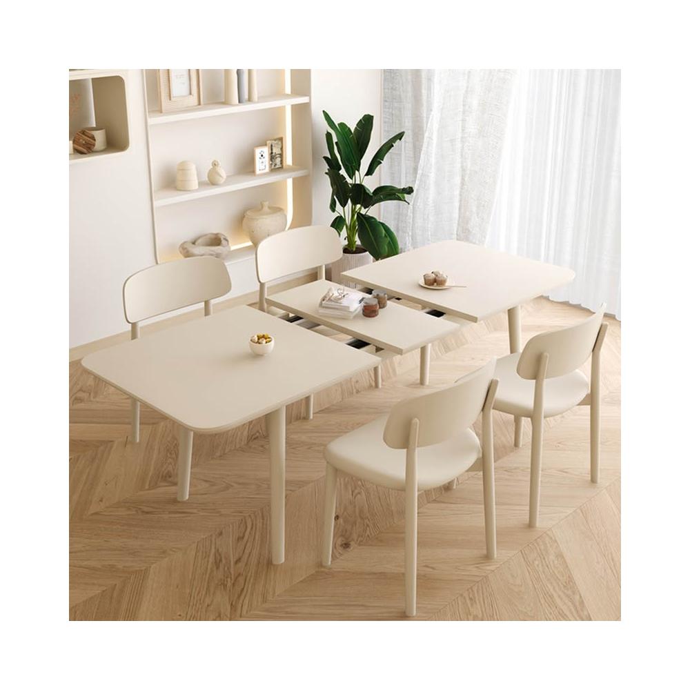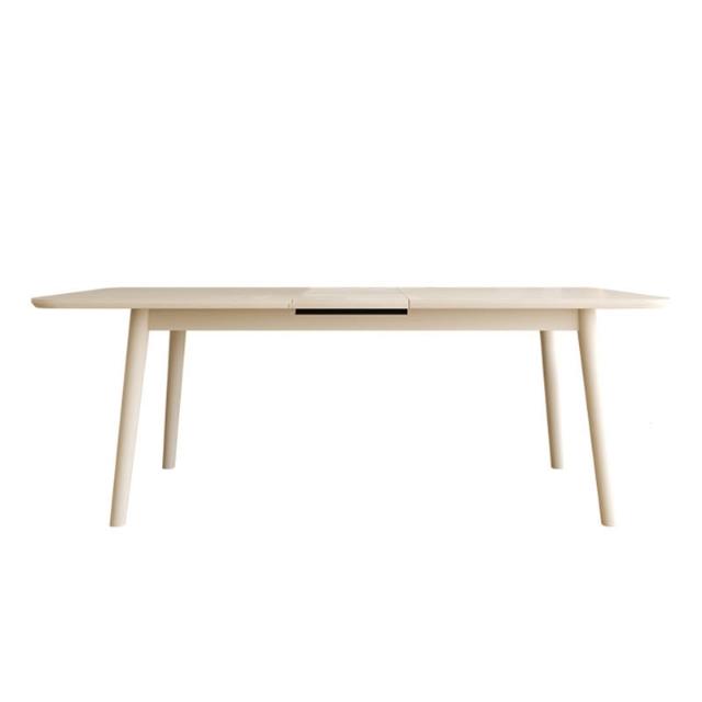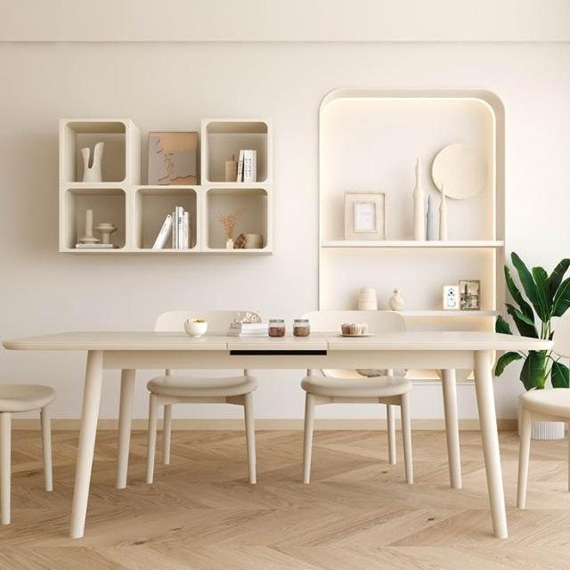 法式白色奶油風純白岩板實木餐桌可伸縮小戶型2023新款餐桌椅組合