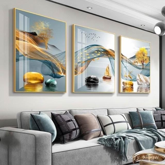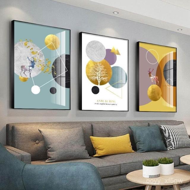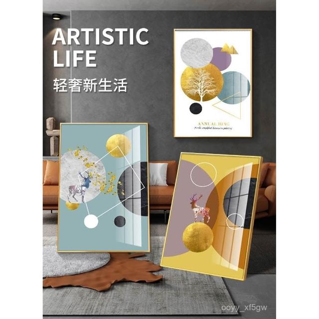 壁畵帶框客廳裝飾畵現代簡約北歐沙髮冰晶餐廳高檔玻璃三聯掛畵ujhgf