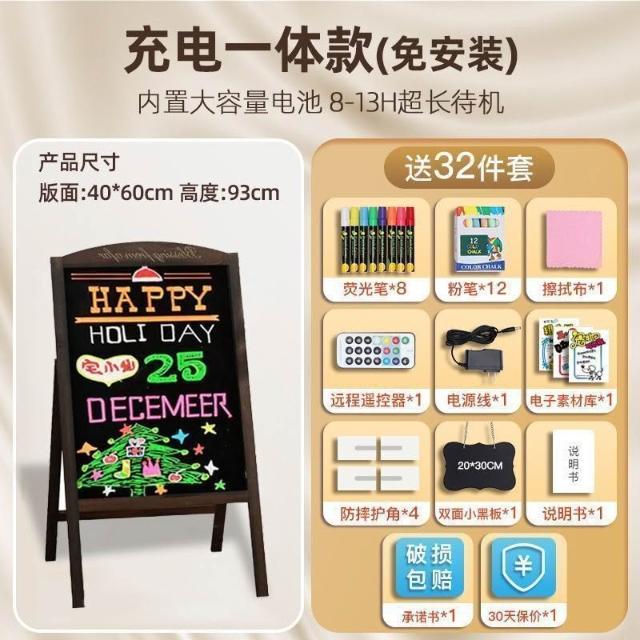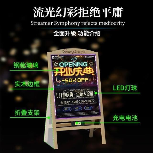 幕辭精品 小黑板店鋪用黑板廣告展示牌支架式商用發光手寫活動擺攤熒光板 18e